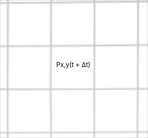 $$ \frac{P_{x,y}(t + \Delta t) - P_{x,y}(t)}{\Delta t} $$is the discrete approximation for \(\frac{\partial P}{\partial t} \).